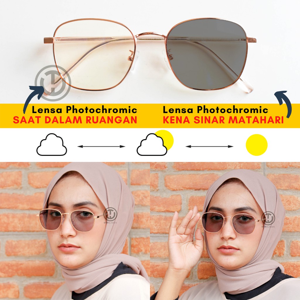 Jual 2 in 1 Kacamata Photocromic Anti Radiasi Asli Wanita Pria Besi Frame Kacamata Bulat Kaca Mata Minus. Frame Kacamata O Sport Free Lensa Photochromic atau Blue Ray - Blueray. Mereka mengubah bentuk dan menyerap cahaya yang berarti lensa mulai terlihat lebih gelap.
